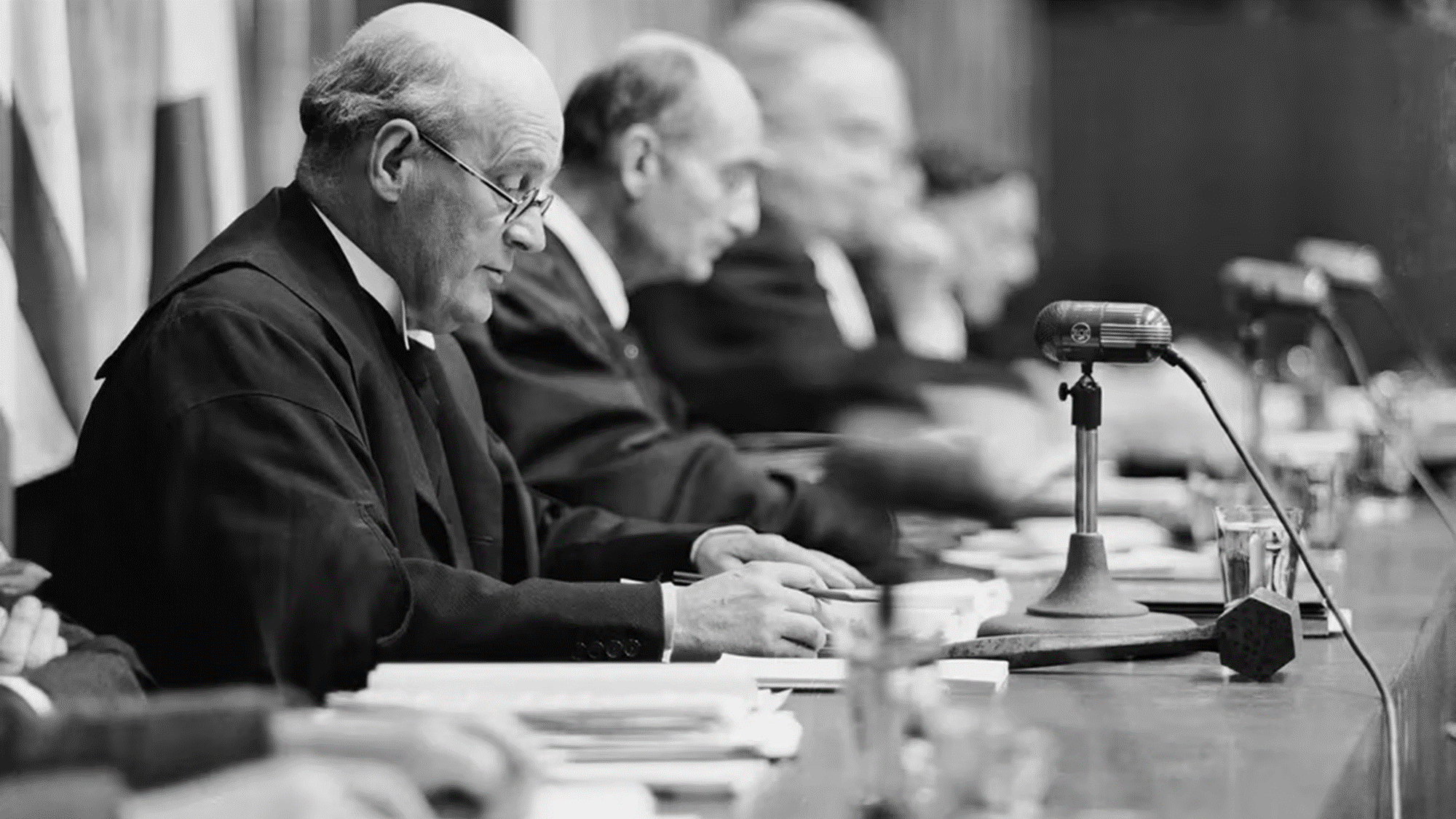 Nüremberg El Presidente del Tribunal Internacional de Crímenes de Guerra, Lord Justice Geoffrey Lawrence lee parte de los veredictos finales al terminar los juicios por crímenes de guerra en Nüremberg, 30 de septiembre de 1946